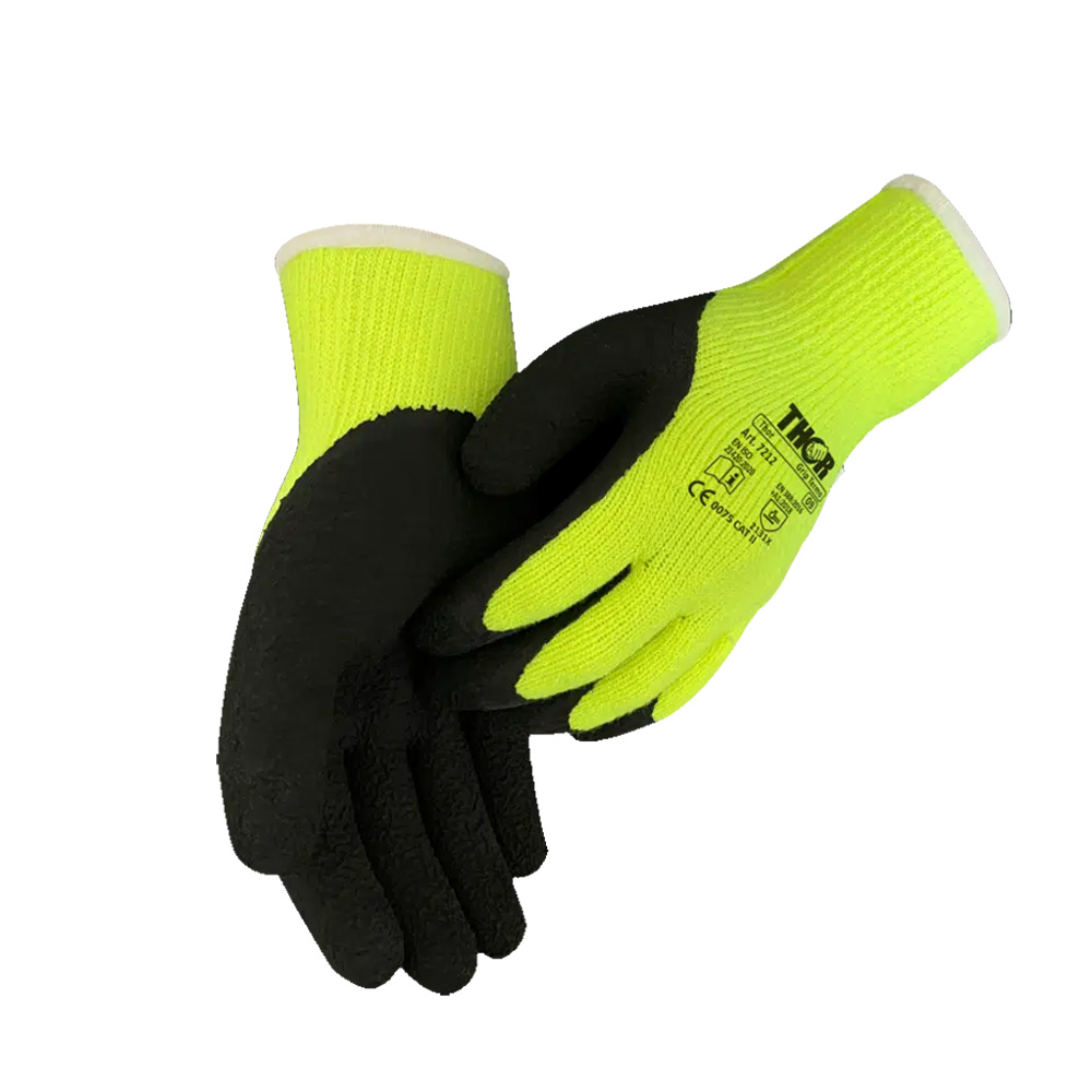 THOR Grip Termo 7212 ist ein hochwertiger Winter‑Arbeitshandschuh aus Polyesterstrick mit Strick / Thermofutter und robuster Latex‑Schaumbeschichtung. Die raue, gewellte Handfläche sorgt für sicheren Grip – ideal für Arbeiten bei niedrigen Temperaturen.