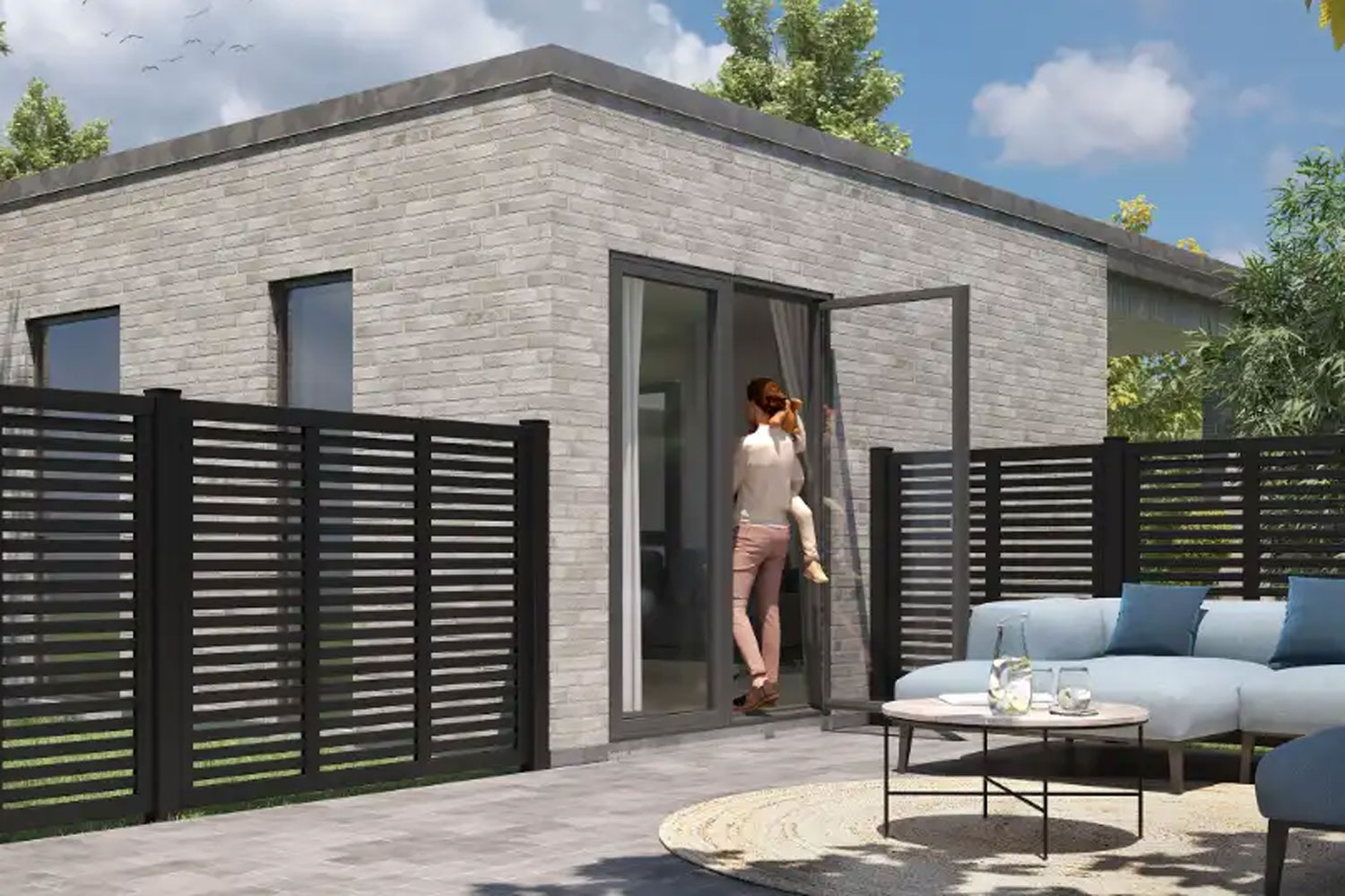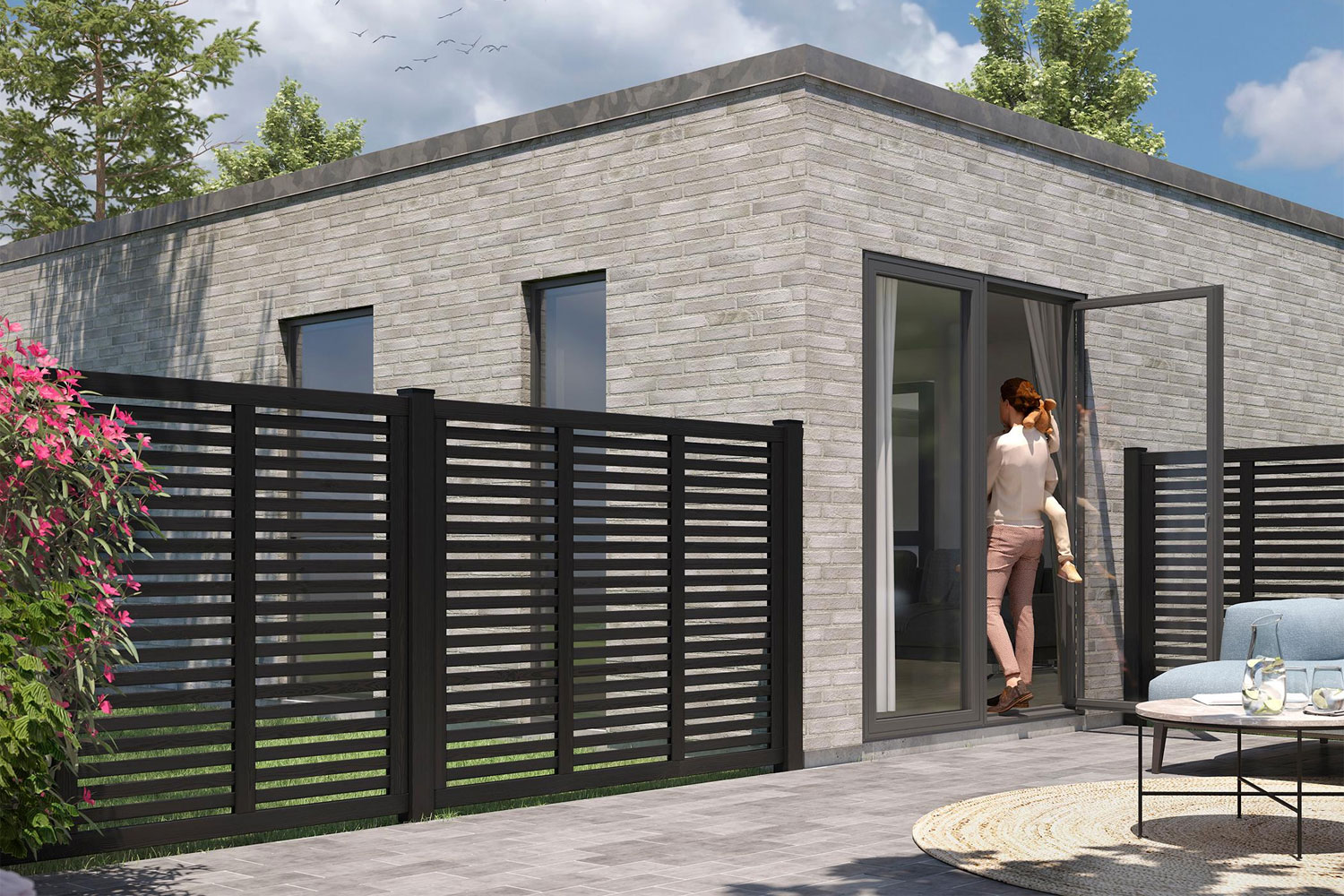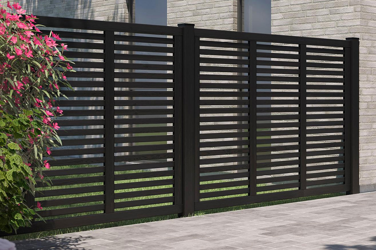 Harmoni schwarz soll - wie der Name schon sagt - Harmonie und Achtsamkeit verkörpern. Daher lag auch der japanische Goji Stil als Designanregung nahe. Der Marken-Lamellenzaun, auch als Lamellen-Sichtschutzzaun bezeichnet, ist mit relativ breiten Lichturchlässen sehr schön gezeichnet. Beachte bitte, dass diese Zaunserie keine geschlossene Sichtbarriere bietet. Harmoni ist auf beiden Seiten gleich, beide Seiten sind als Schauseite ausgelegt. Konzipiert als perfekter Raumteiler oder in einer offenen Nachbarschaft, in der der Zaun dann von zwei Seiten einsehbar sein kann. So gelingt es auf harmonische Weise eine optisch klare, funktionale Trennung zwischen Gärten / Grundstücken zu erstellen ohne dass dabei eine Abgrenzung entsteht. So gelingt es geschmackvoll Grenzen zwischen Terrasse und Garten, aber auch zwischen Innen und Außen zu ziehen. Das Design ist mit skandinavischen Designelementen angereichert, in der schwarzen Ausführung ist das deutlich zu sehen. Das Ergebnis ist ein besondere Zaun, erste Auslieferung im Jahr 2024.