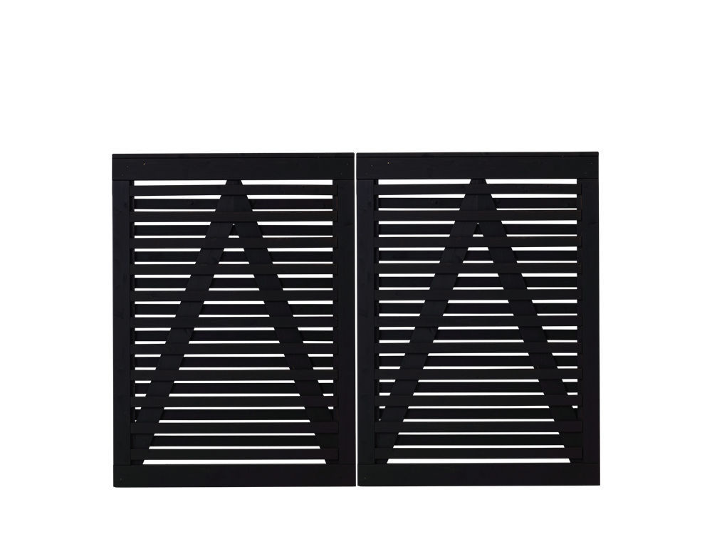 Osaka Lamellen-Doppeltor: zweiflügeliges Gartentor, diagonal verstärkt , Sandwichrahmen, in schwarz.