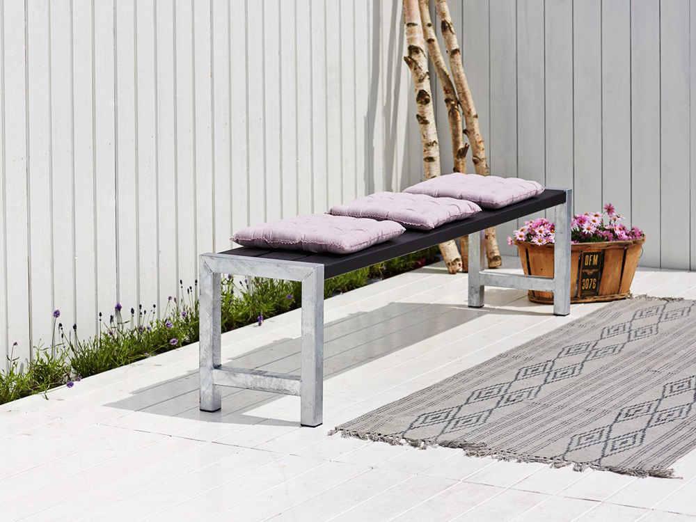 Sitzbank in schwarz für den Außenbereich. Solo-Bank bzw. Sitzbank für die Plus Plankenserie. Verstellbare Fußstände (0 - 15 mm).