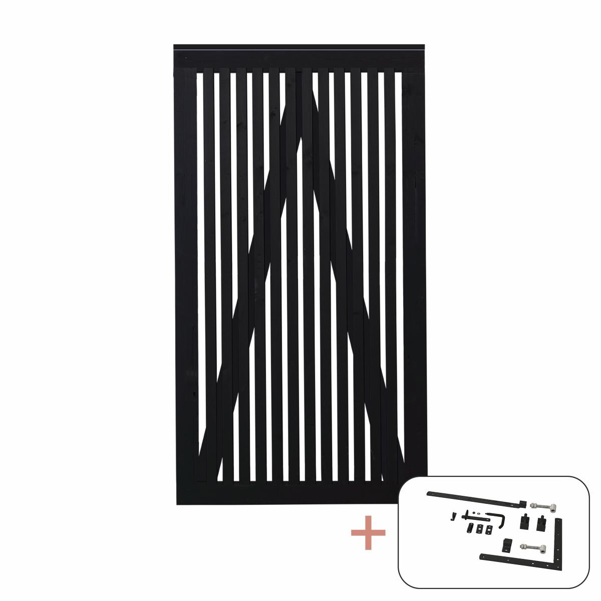 Plus Sendai Sichtschutztor Einzeltor schwarz 100 × 180 cm mit Beschlägen schwarz