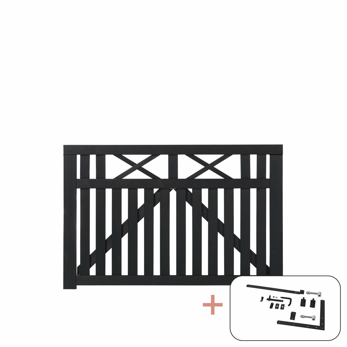 Plus Vinesse breites Einzeltor schwarz 150 x 98 cm mit Beschlägen schwarz