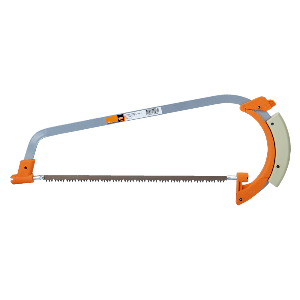 Bügelsäge komplett mit Holz-Sägeblatt, drehbar eingehängt. Für frisches und trockenes Holz. Mit rostgeschütztem Stahlrahmen und Hochleistungs-Sägeblatt. Ideal für Forst- und Gartenarbeiten.