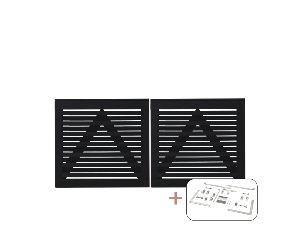Osaka Doppeltor mit hochwertigem Beschläge-Paket: zweiflügeliges Einfahrttor, diagonal verstärkt , Sandwichrahmen, in schwarz.