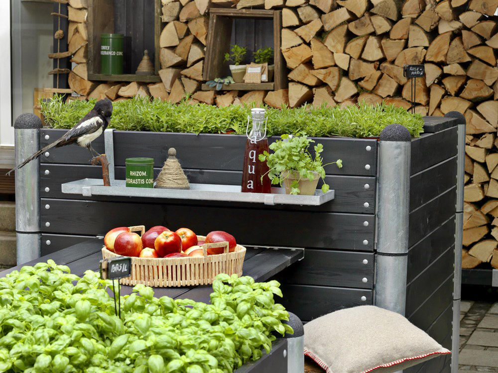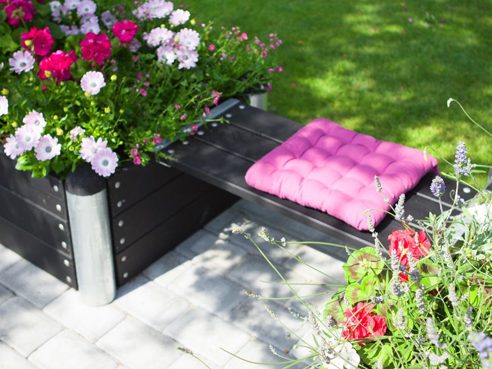 Aus der Produktserie mit den Materialien Premium WPC und Holz sowie verzinktem Stahl gibt es zahlreiche Einzelbausteine wie Planken, Verbindungsstücke und Extras wie Flächenbretten als Sitzbank oder Deckel. Aus diesen Zutaten kannst du leicht alles bauen, was im Freien gerade gebraucht wird.