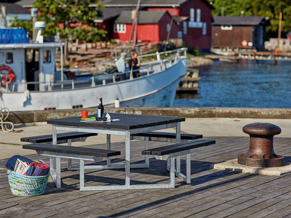 Die Kombimöbel-Sitzgruppe ist aus dem Bild vieler dänischer Gemeinden, Fußgängerzonen und touristischen Zielen nicht mehr wegzudenken. Bestens überall dort geeignet, wo Besucher oder Kunden verweilen dürfen - sollen. So füllt man eine Umgebung und ganz besonders öffentliche Plätze mit Leben. Kann bei Sicherheitsbedenken anbetoniert oder am Stahlrahmen angeschlossen werden. Das ist ein weiteres Merkmal der Twist Kombimöbel. Ein genauso wichtiger Vorteil: urbanes, modernes Aussehen bei gleichzeitig guter Funktionalität und hoher Robustheit.