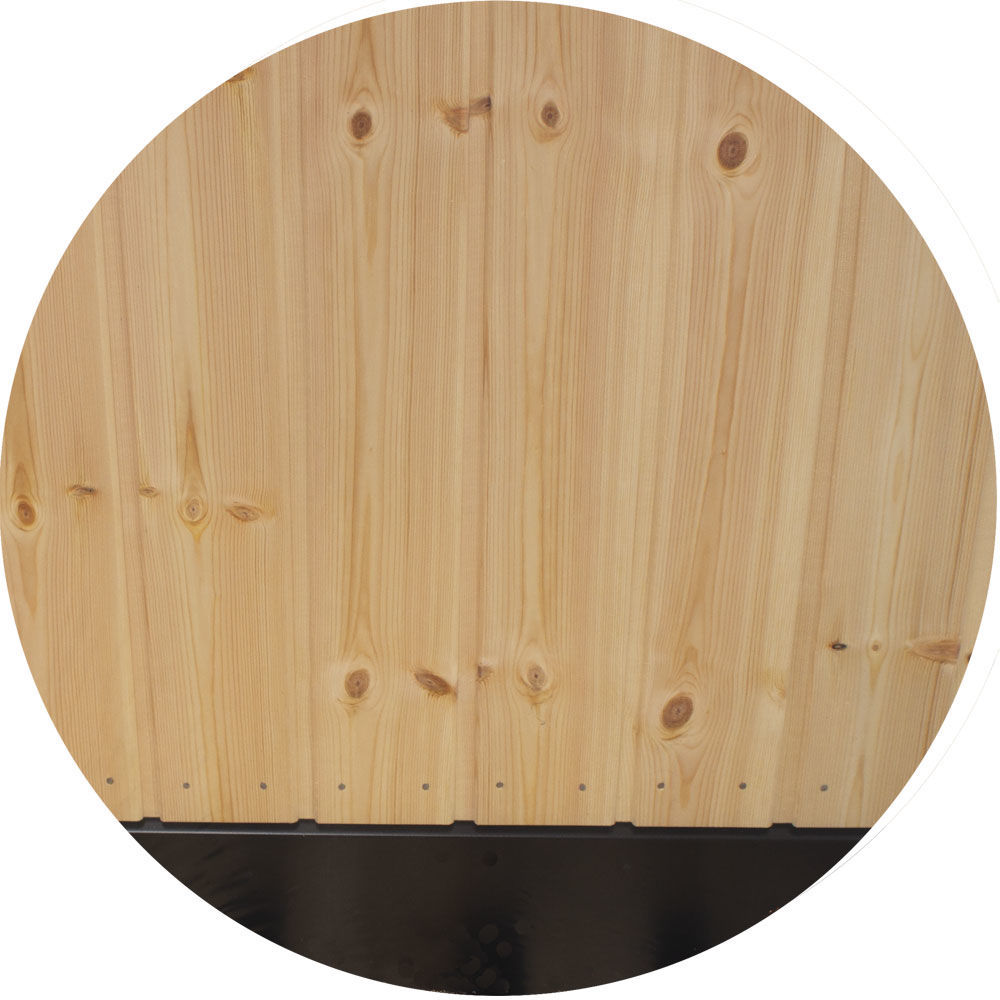Die Türe wird mit Holz in unbehandeltem Zustand geliefert. Alle Holzteile sollten vor der Montage mit Holzschutz behandelt werden. Es ist ausdrücklich eine farblose oder helle Schutzlasur / Schutzfarbe für die Holzschutzbehandlung empfohlen. Die Maßhaltigkeit der Türe ist garantiert bis Farbton NCS-7500 oder heller.
