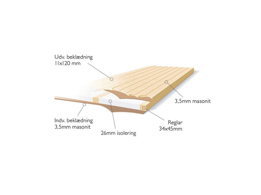 Verkleidung Außen: Kiefer 11 x 120 mm auf 3,5 mm Masonitplatte